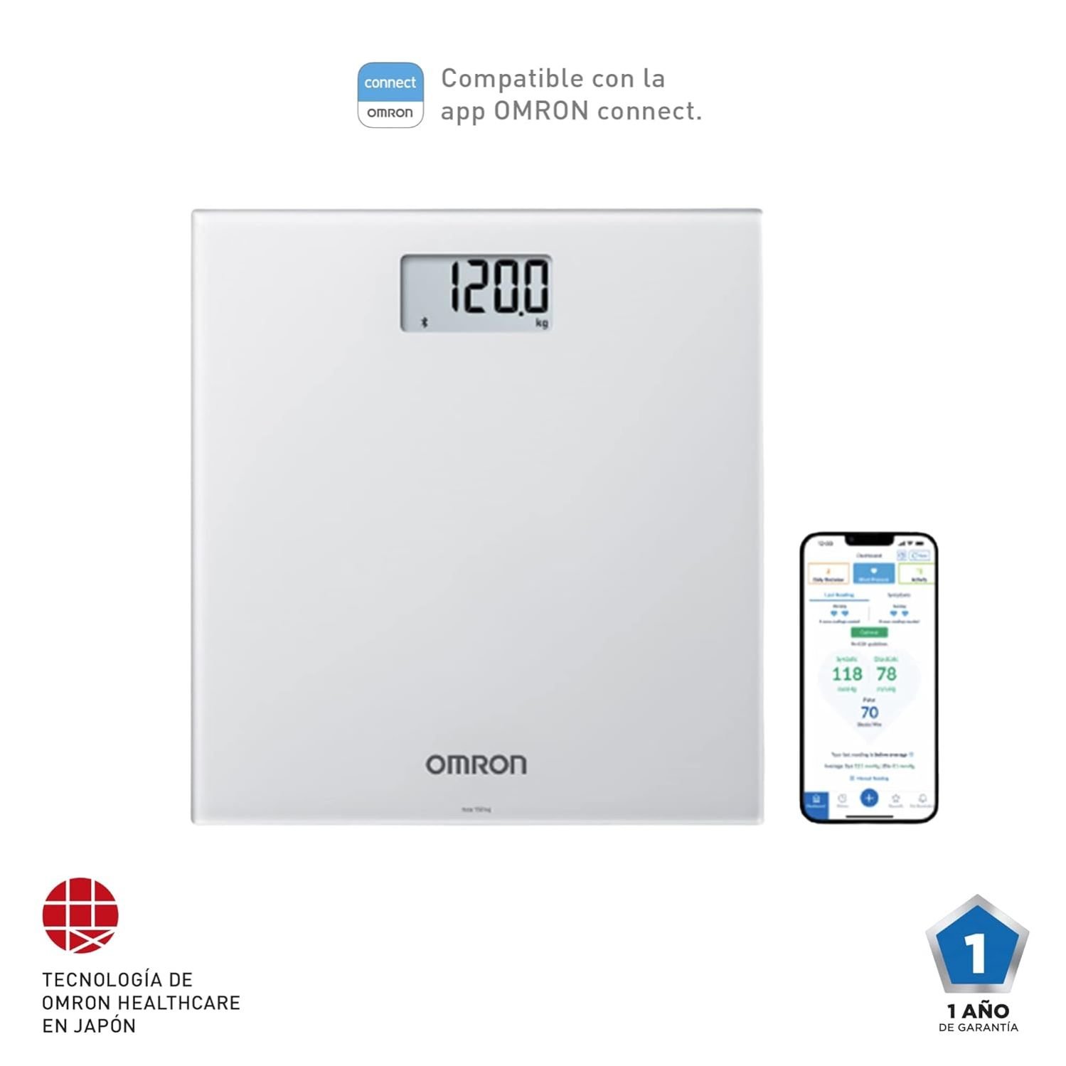 Omron Healthcare, Headquartered in Kyoto, Japan, is a global leader in the field of clinically proven, innovative medical equipment for health monitoring. As a brand, Omron believes in Zero compromise on healthier lives; it is the goal that powers and inspires Omron Healthcare s innovations and helps people compromise less and achieve more in life. As a result of its proven track record, OMRON is today the Number 1 recommended brand by Doctors, cardiologists and Health Professionals across the world when recommending blood pressure monitors, Nebuliser or digital weighing scales to their patients. The HN300T2 Intelli IT from OMRON makes tracking over time reliable and accurate body weight measurements even easier. Our risk of high blood pressure rises with weight and age; by maintaining a healthy weight, you can take charge of your blood pressure. With HN300T2 Intelli IT from OMRON just step on and the device will quickly and accurately take your body weight. Your result will then be automatically stored in the OMRON connect app. When used with a compatible OMRON blood pressure monitor, you can see how your weight goals impact your blood pressure. Product Details: •Device: OMRON HN300T2 EGY Intelli IT •Device type: Body Weight Scale •Weight: Yes •Body mass index: Yes •Number of user profiles: 2 •Guest mode: Yes •Age range: 10-80 Years •Increments (g): 100.00 •Maximum weight capacity (kg): 150.00 •On/Off technology: Sensor Switch •Weight (kg): 1.40 •Item dimensions (mm): 270 x 290 x 26.5 Box Contains 1 x HN300T2 Grey Intelli IT Smart Body Weight Scale, 4 x AA batteries, instruction manual and limited warranty sheet.