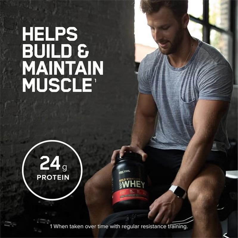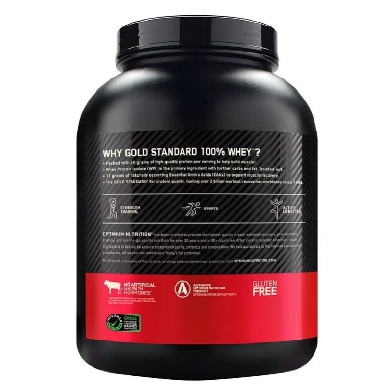 Whey Protein Isolates (WPIs) are the purest form of whey protein that currently exists. Thats why theyre the first ingredient you read on the Gold Standard 100% Whey label. By using WPI as the primary ingredient along with premium ultra-filtered whey protein concentrate (WPC), were able to pack 24 grams of protein into every serving to support your muscle building needs after training. This superior quality powder has been proved to mix easily using a shaker cup or just a glass and spoon. Theres no doubt that this is the standard by which all other whey proteins are measured. Each serving of Gold Standard 100% Whey contains 24 g of premium whey protein to support muscle growth and recovery, 5.5 g of naturally occurring BCAAs and many other minerals, but just 1 g of fat, 1 g of sugar and 3 g of carbs.
