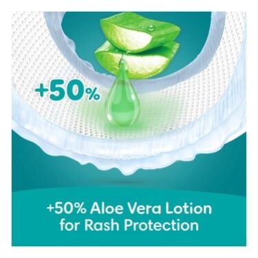Aloe Vera Enrichment: Soft lotion helps shield baby’s skin from rash.