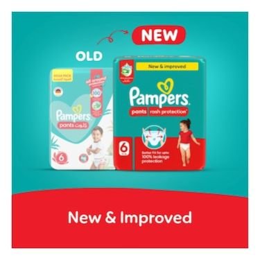 Pampers Rash Protection Pants Size 6 Value Pack includes 19 high-quality diaper pants specially designed for toddlers weighing 16kg and above. These pants offer advanced protection from rashes while keeping your baby dry, comfortable, and active throughout the day.