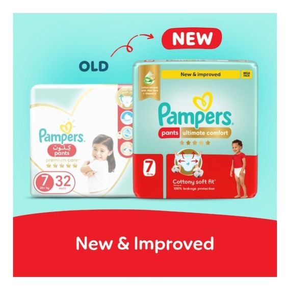 Pampers Ultimate Comfort Diaper Pants Size 7 are tailored for toddlers weighing 17kg and above. This pack contains 32 high-quality diaper pants designed to offer all-day comfort, advanced leak protection, and optimal skin care.