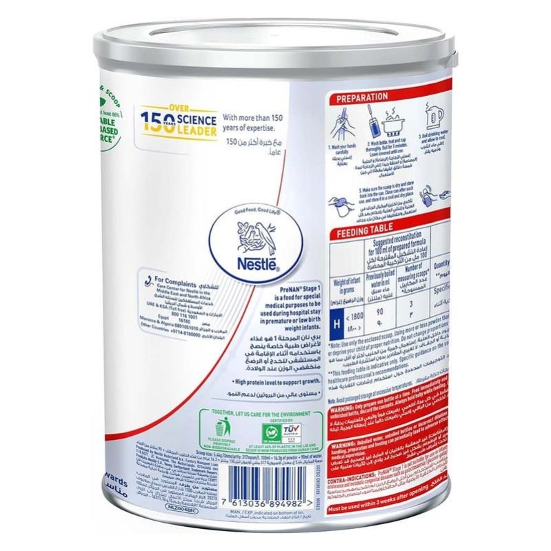 Nestle Pre Nan helps rapid growth and increases the weight of premature infants. Nestlé Pre Nan supports immunity along with growth and development. Enriched with vitamins and maltodextrin, this spray-dried, specifically formulated baby food helps rapid growth and increases the weight of premature infants.