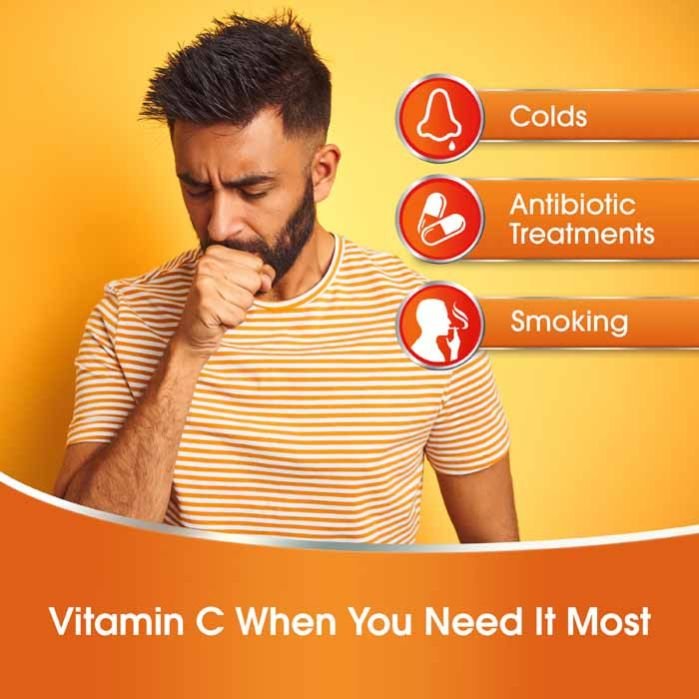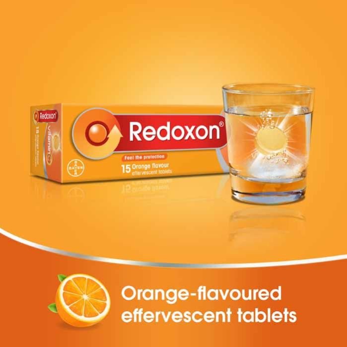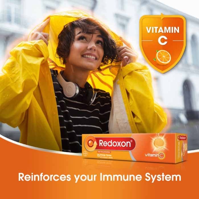 Redoxon with 1000 mg Vitamin C essential immunity support effervescent tablets helps boost your immune system against daily threats like viruses and bacteria, smoking, or even taking antibiotics. They also reduce the severity and duration of cold symptoms.