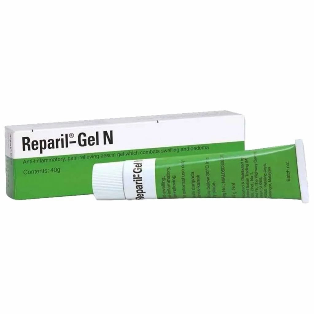 Reparil-gel N is a unique preparation that has triple effect: it relieves pain, anti-edematous (decreases swelling), and acts as an anti-inflammatory