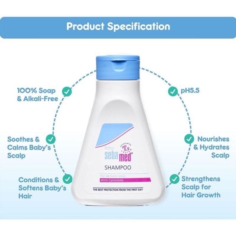 Sebamed Baby Shampoo is ideal for cleansing and caring for the fine hair and delicate scalp of babies and children, minimizing the risk of dryness or irritation. Free from nitromochus compounds, formaldehyde, nitrosamines, and dioxane and without color additives. The pH value of 5.5 supports the development of the baby's acid mantle and the moisture balance in the skin.