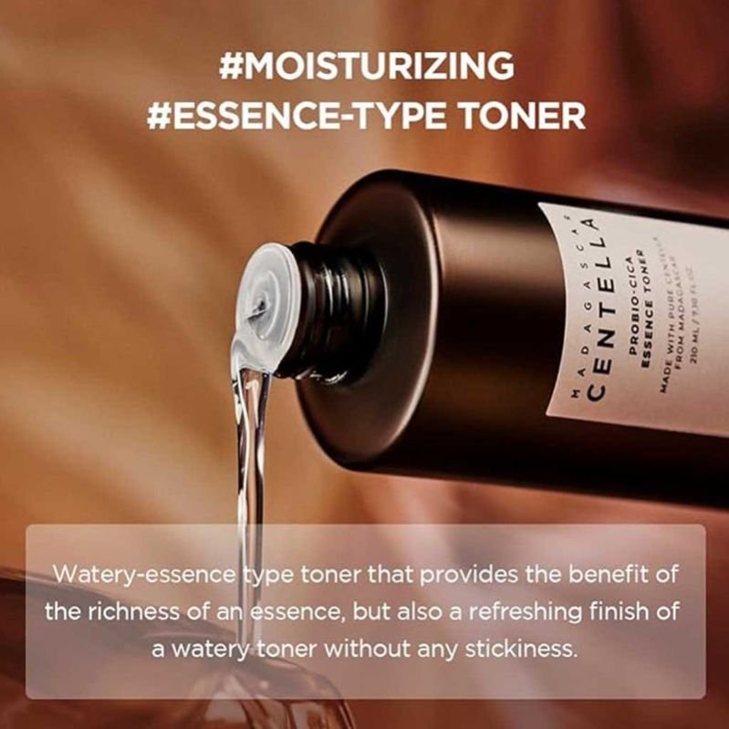 Skin1004 Madagascar Centella Probio-Cica Essence is a gentle, non-comedogenic, and vegan facial toner with anti-aging, hydrating, and nourishing benefits, especially beneficial for sensitive or irritated skin.