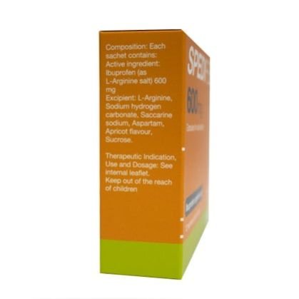 - Contains Ibuprofen 600 mg as L-arginine salt