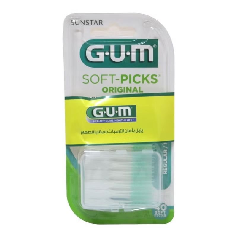Sunstar G.U.M Soft Picks Original are innovative, comfortable, and easy-to-use between-teeth cleaners for the on-the-go removal of dental plaque and food particles from between the teeth and around crowns, bridges, implants, dentures, and orthodontic appliances. The flexible and tapered synthetic rubber bristles fit easily between most teeth, removing dental plaque where gum disease often starts and toothbrushes alone cannot reach.