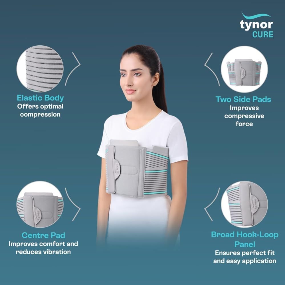 The Tynor Chest Binder A-11 in Medium size is a specialised orthopaedic support designed to compress and stabilise the thoracic region. It is commonly used after cardiothoracic surgeries or rib fractures to reduce pain, support healing, and facilitate breathing.