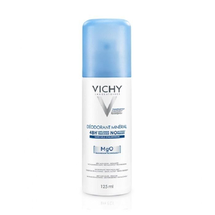 Vichy Deodorant Mineral Spray is a 100% mineral deodorant suitable for sensitive skin, free from alcohol or aluminum salt.