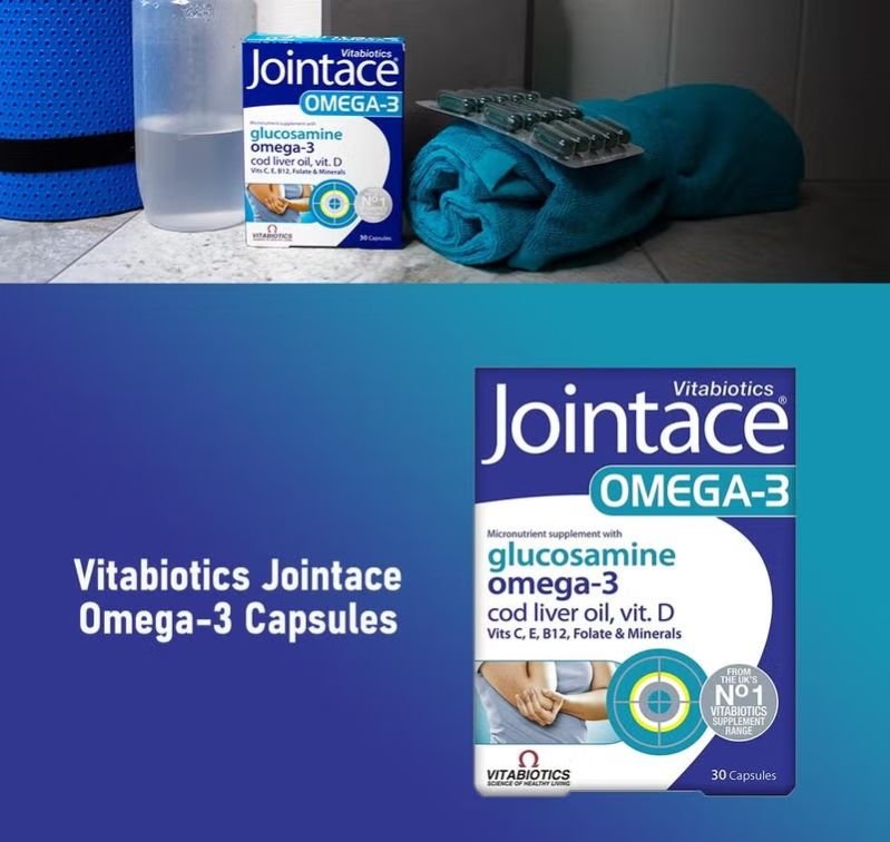Vitabiotics Jointace Omega-3 Capsule is a natural supplement for joint health and mobility, containing trace minerals, vitamins, and nutrients, and it is not tested on animals.