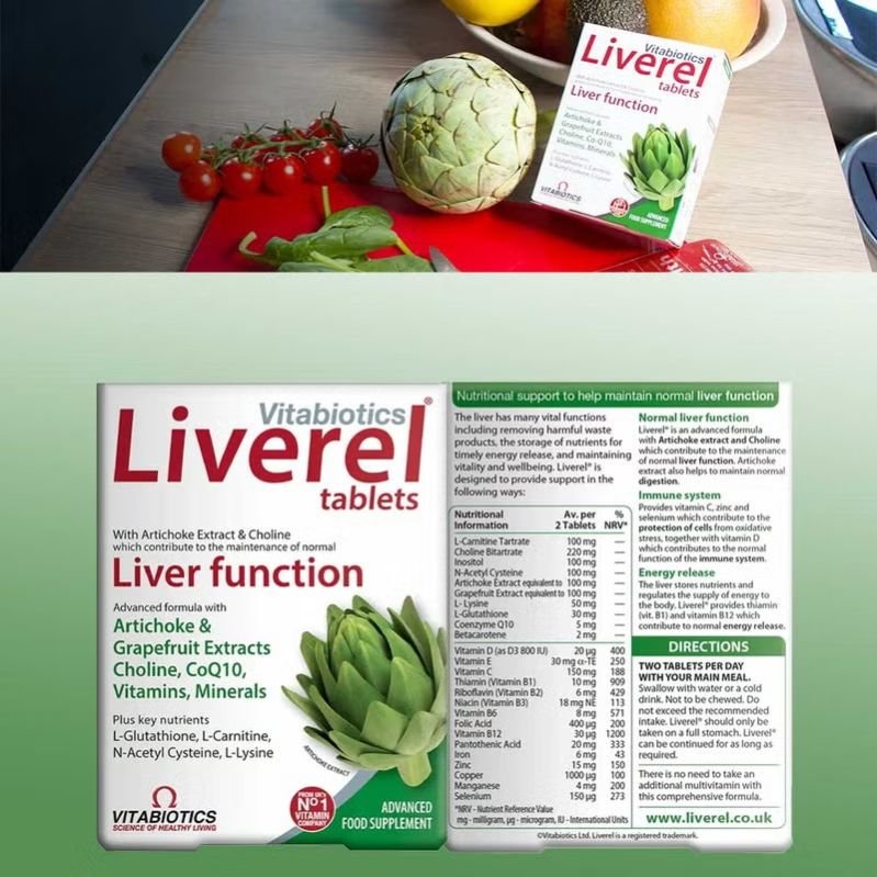 Vitabiotics Liverel Tablets give you a sensibly balanced blend of vitamins and trace minerals to safeguard your daily intake of key nutrients and amino acids. Liverel is the first and only supplement to combine Artichoke extract with N-acetylcysteine, Choline, L-Carnitine and L-Glutathione, as well as other vitamins and trace minerals. Liverel has been developed with the help of leading scientists and nutritionists. The Liverel formulation is based on the very latest international findings on the role of nutrients in liver health. The liver has many vital functions, including removing harmful waste products, the storage of nutrients for timely energy release, and maintaining vitality and well-being. Liverel is an advanced formula with Choline which contributes to the maintenance of normal liver function. The formula also provides vitamin C, zinc, and selenium, which contribute to the protection of cells from oxidative stress, together with vitamin D, which contributes to the normal function of the immune system. The liver stores nutrients and regulates the supply of energy to the body. Liverel provides thiamin (vitamin B1) and vitamin B12 which contribute to normal energy release.