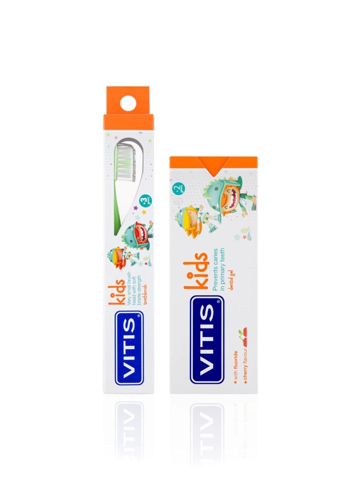 Vitis Kids toothpaste gel is specially formulated to keep baby teeth healthy in children over 2 years old. Thanks to its composition with fluoride and xylitol.