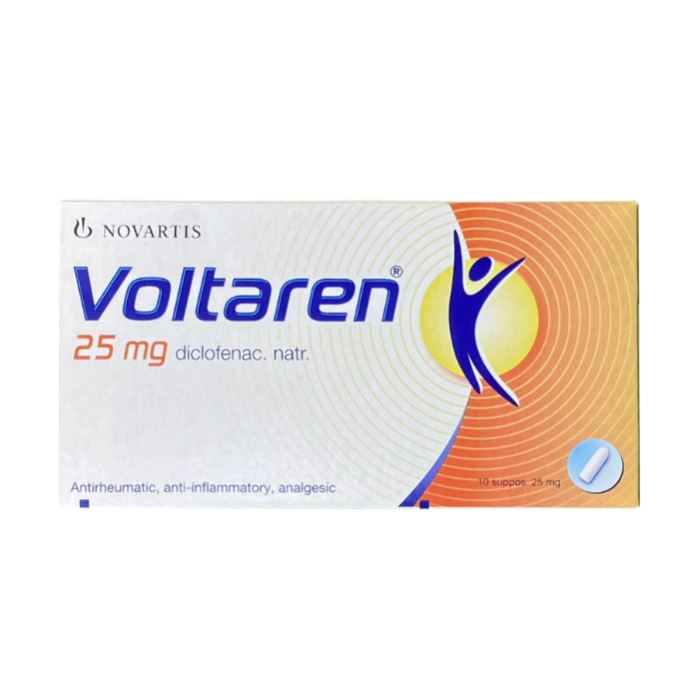 Voltaren 25mg Suppositories contain Diclofenac Sodium, a widely used non-steroidal anti-inflammatory drug (NSAID) that offers rapid relief from pain and inflammation. Suppository form is useful for patients unable to take oral medications.