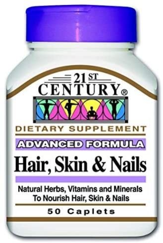 “21st Century Hair Skin & Nails is formulated with essential vitamins and minerals to support the health and appearance of your hair, skin, and nails. These easy-to-take caplets provide the nutrients needed to promote beauty from within. Each pack contains 50 caplets, ideal for regular use.”