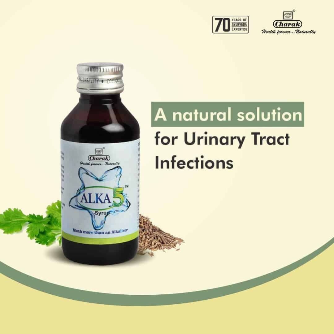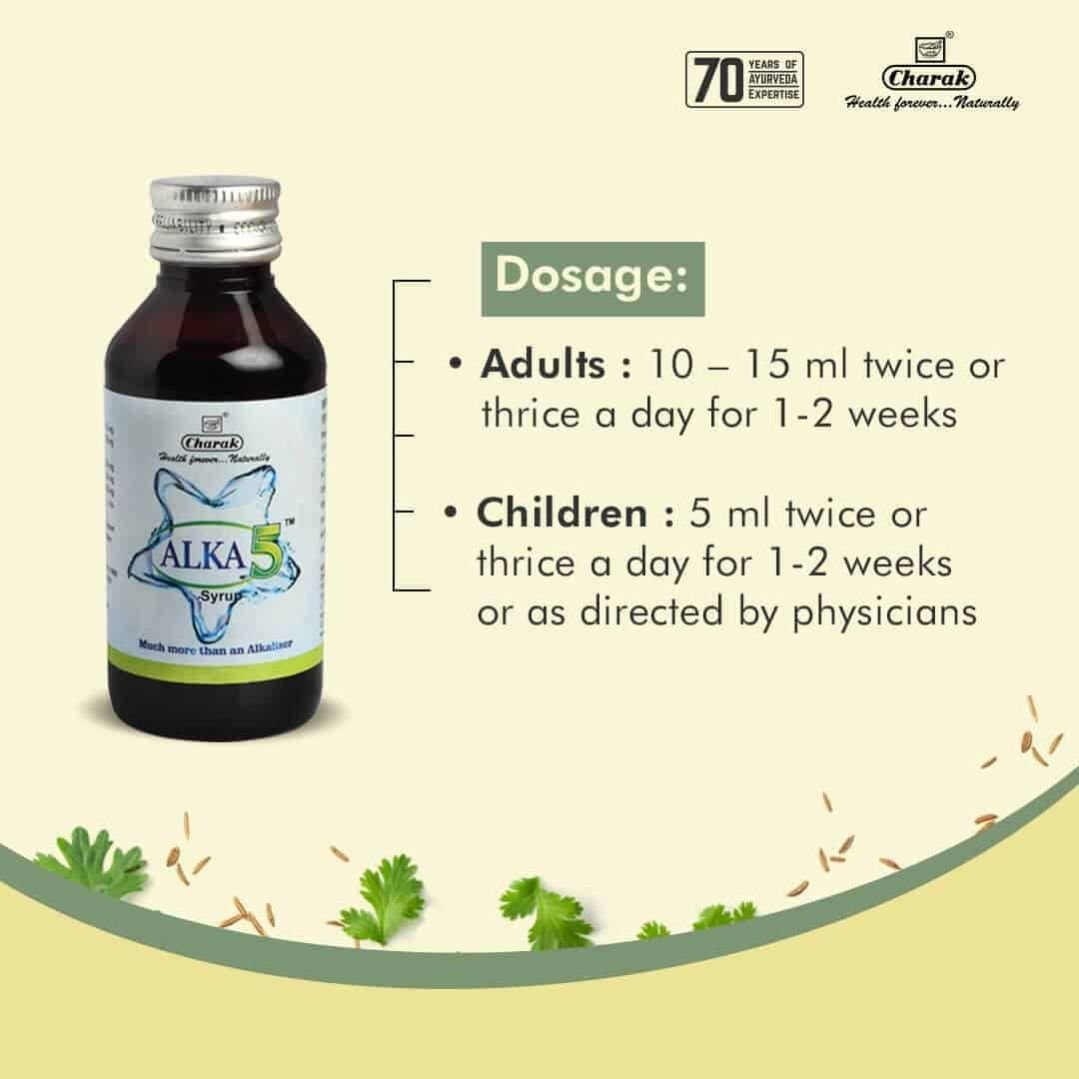 Charak Alka 5 Syrup is a natural alkaliser that helps to maintain a normal urine pH balance.