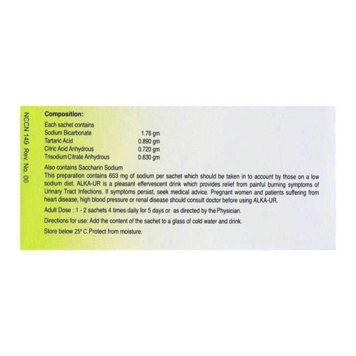 Alka-Ur Granules is used for discomfort in urinary tract infections, Urine alkalization, bladder inflammation, treatment of urinary bladder calculi, acidity in the blood, Cystitis, Heartburn, kidney problems, anticoagulation, antiseptic and other conditions.