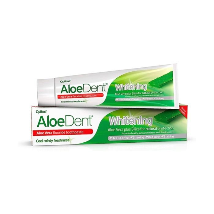 Aloe Dent Toothpaste Whitening is a natural toothpaste that combines aloe vera with other ingredients to gently whiten teeth, remove stains, and promote overall oral hygiene.