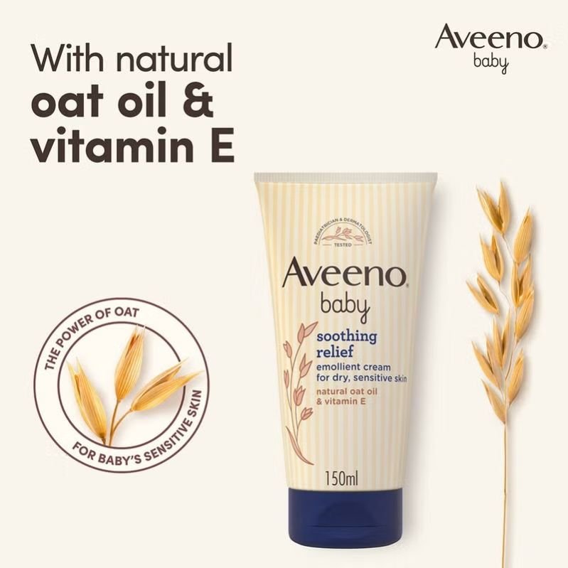 Aveeno Baby Soothing Relief Emollient Cream for Dry, Sensitive Skin is enriched with Vitamin E and 100% pure oat oil. It is clinically proven to moisturise for 24 hours and helps to soothe dry, sensitive skin prone to irritation and leaves skin feeling smooth, soft, and healthy. Vitamin E not only helps to moisturise your baby s skin but also has the ability to protect the skin against irritating factors that cause dry, rough, or flaky skin. Oat helps to soothe the effects of several skin conditions, like eczema-prone skin and symptoms of psoriasis. It is specially formulated for babies with very dry, itchy skin who are more prone to regular irritation and itchiness. It is also suitable for little ones who may be prone to eczema. For a complete routine, use with Aveeno® Baby Soothing Relief Emollient Wash. Using the power of a selection of natural ingredients, Aveeno® provides beneficial and nourishing skincare for sensitive skin states while also committing to inclusive & sustainable practices. The history of Aveeno is built upon their commitment to combine scientific research with selected ingredients found in nature. The scientists unlock the power of these ingredients to bring nourishing solutions to skincare so even the most sensitive skin feels soothed and moisturised. The products have been thoughtfully formulated for sensitive skin, free of parabens, phthalates, and dyes, while providing the same benefits of key ingredients like nourishing oat and gentle soy.