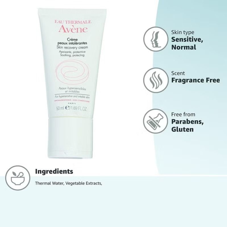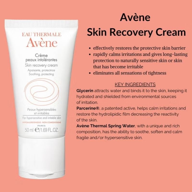 Avene Skin Recovery Cream rapidly calms irritations and gives long-lasting protection to naturally sensitive skin or skin that has become irritable. This is a completely sterile rebalancing, soothing, and protective care for hypersensitive and irritated skin. It reduces skin reactivity and guarantees long-lasting protection by restoring the skin s natural barrier. Lightweight daily cream helps restore skin s barrier while soothing visible redness, tightness, and overheating; also moisturizes while calming irritation. Avene Skin Recovery Cream is a nourishing cream for sensitive skin. Infused with the brand s Thermal Spring Water, the moisturizer helps to calm stressed, reactive skin. It also replenishes the natural moisture barrier, supporting a smooth, hydrated complexion. Avene Thermal Spring Water, with its soothing properties, improves hydration and preserves the skin s natural balance. Avene has over 275 years of expertise in caring for sensitive skin and is recommended by dermatologists worldwide. Dedicated to sensitive skin and improving quality of life for all skin types, leveraging pharmaceutical and dermatological heritage and expertise. Avene formulas and the toxicology profile of each individual ingredient are audited by scientists. All clinical studies are conducted under medical control, ensuring the utmost respect for sensitive skin.