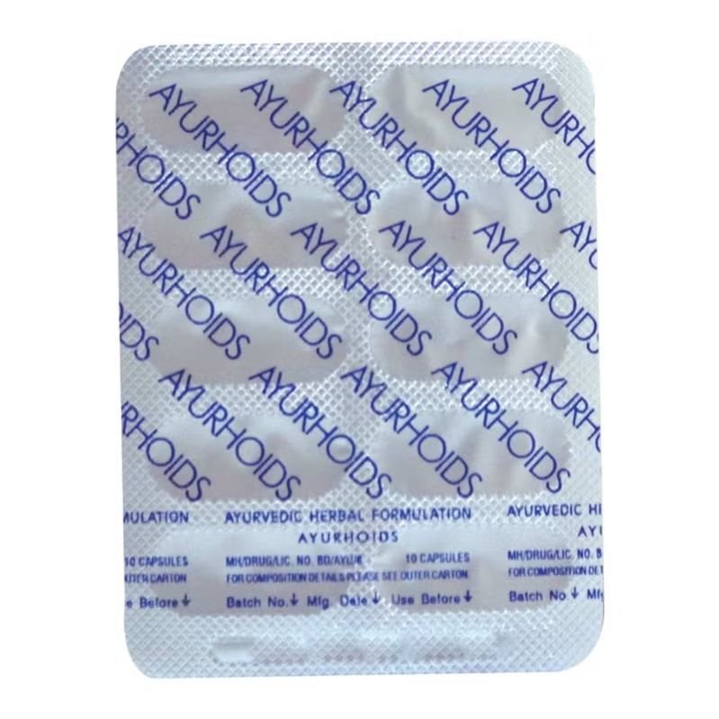 Ayurhoids is a safe oral proprietary ayurvedic herbal formulation that gives prompt relief in piles-hemorrhoids. Each capsule is composed of herbal ingredients and extracts of Mimosa Pudica, Nymphaea Rubra, Azadirachta Indica Seed, Amorphophalius Campanulatus, Plantago Ovata, Shorea Robusta, Corriandrum Sativum, Terminalia Chebula, Emblica Officianale, Mesua Ferrea, Commiphora Myrrh, Holarrhena Antidysenterica, Salmalia Malabarica, Aegle Mermelos and Caesalpinia Crista.
