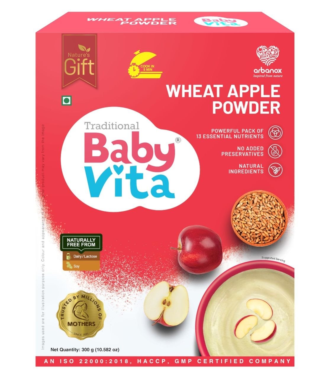 BabyVita Wheat Apple Powder Mix is designed specifically for babies, offering a safe, wholesome, and tasty option for early nutrition.