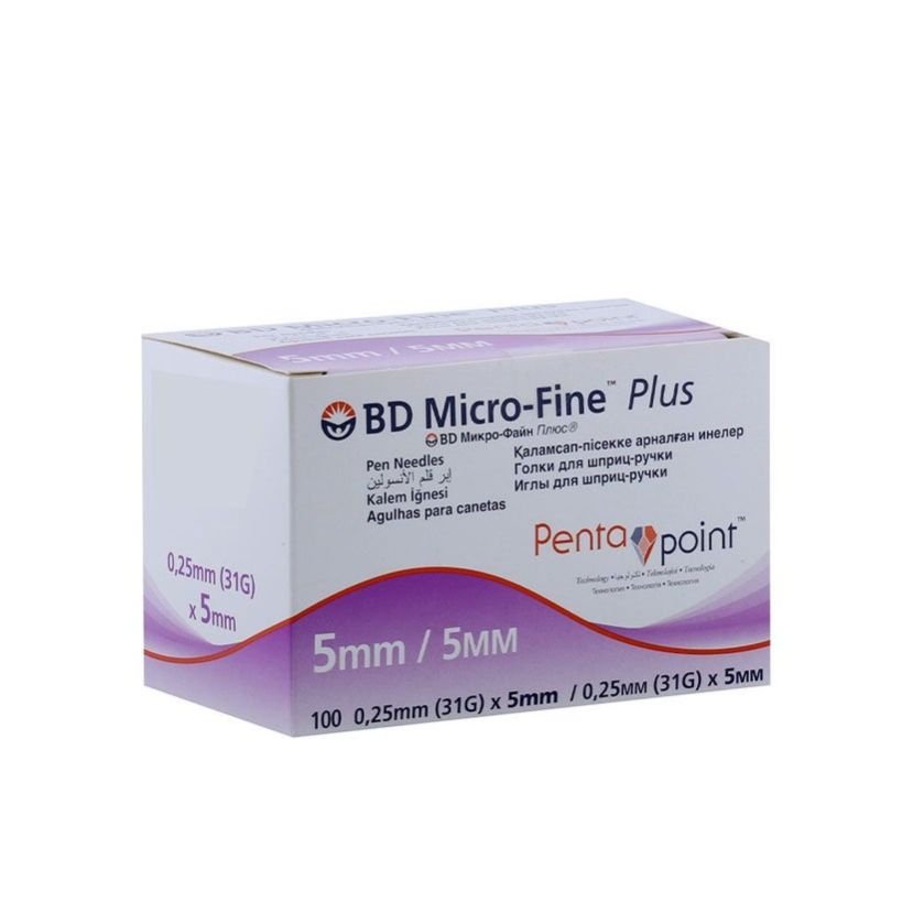 BD Micro-Fine Plus Penta Point 0.25 x 5 mm conveniently helps deliver a precise dose, requiring minimal effort for people with diabetes. Pentapoint technology is clinically demonstrated to reduce the pain of injection by reducing skin penetration force. This may help people with diabetes adhere to an insulin injection regimen and improve outcomes with greater comfort and ease of use. PentaPoint is a patented 5-bevel needle tip design that creates a flatter, thinner surface to help penetrate the skin with significantly greater ease. Added layers of microbonded lubrication while manufacturing the needle help the needle more smoothly glide into skin. Electropolishing polishes the needle to a smooth finish, removing the very small blemishes and rough spots that could otherwise occur during manufacturing and cause painful skin tearing.