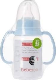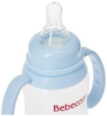 Bebecom Standard Pc Feeding Bottle With Silicone Head, Blue Handle 125ml A337