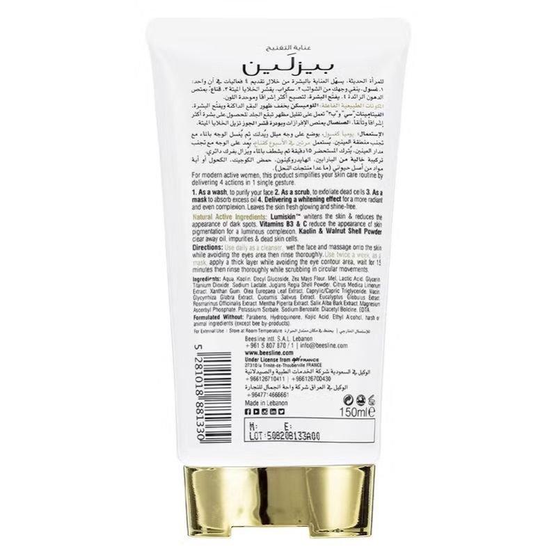 Beesline® Apitherapy Perfect Radiance Whitening 4 In 1 Facial Cleanser effectively whitens, cleanses, and exfoliates skin daily, serving as a weekly face mask and free from harsh ingredients.