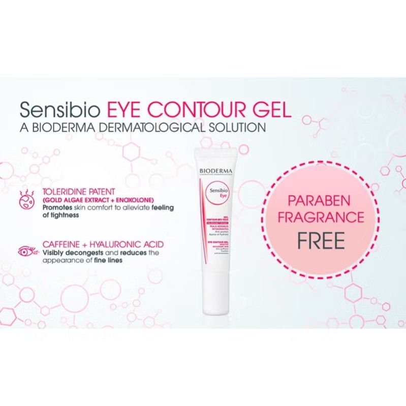 Sensibio Eye soothes eye discomfort, strengthens skin resistance, and increases tolerance for sensitive skin. It contains Toléridine, D.A.F., caffeine, and hyaluronic acid for smoothing and reducing lines.