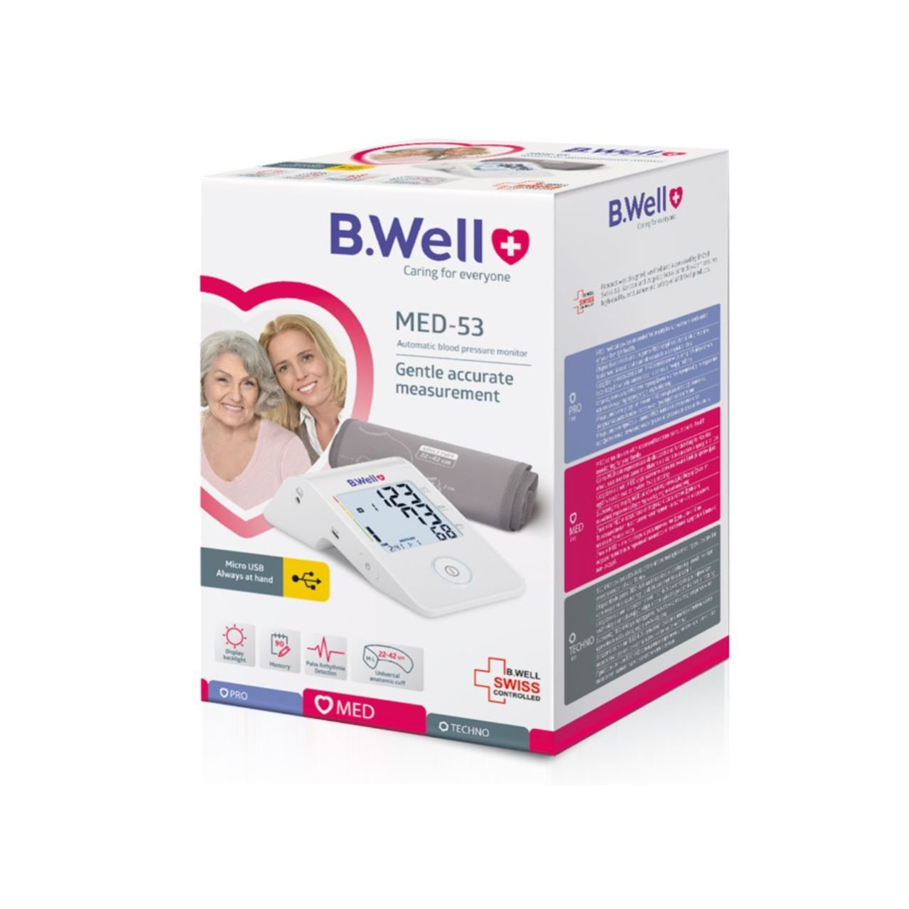 The B.Well MED-53 Automatic Blood Pressure Monitor is a reliable and easy-to-use device designed for accurate blood pressure monitoring at home or in a clinical setting. It provides precise readings for systolic, diastolic, and pulse measurements, helping you track your cardiovascular health effectively.