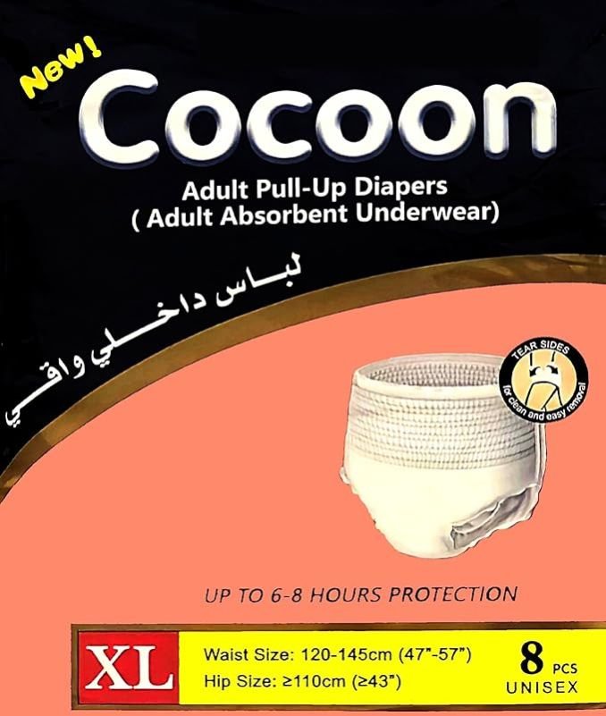 Cocoon Adult Pull-Up Diapers, Absorbent Underwear, Unisex Pants, Extra Large Xl (120-145 Cm Waist), 8 Diapers