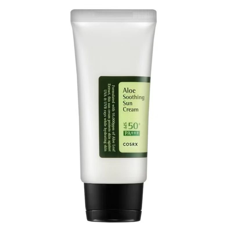 COSRX Aloe Soothing Sun Cream is a lightweight, travel-friendly sunblock formulated with Aloe Arborescens Leaf Extract, providing hydration and a lightweight texture, making it suitable for all seasons.