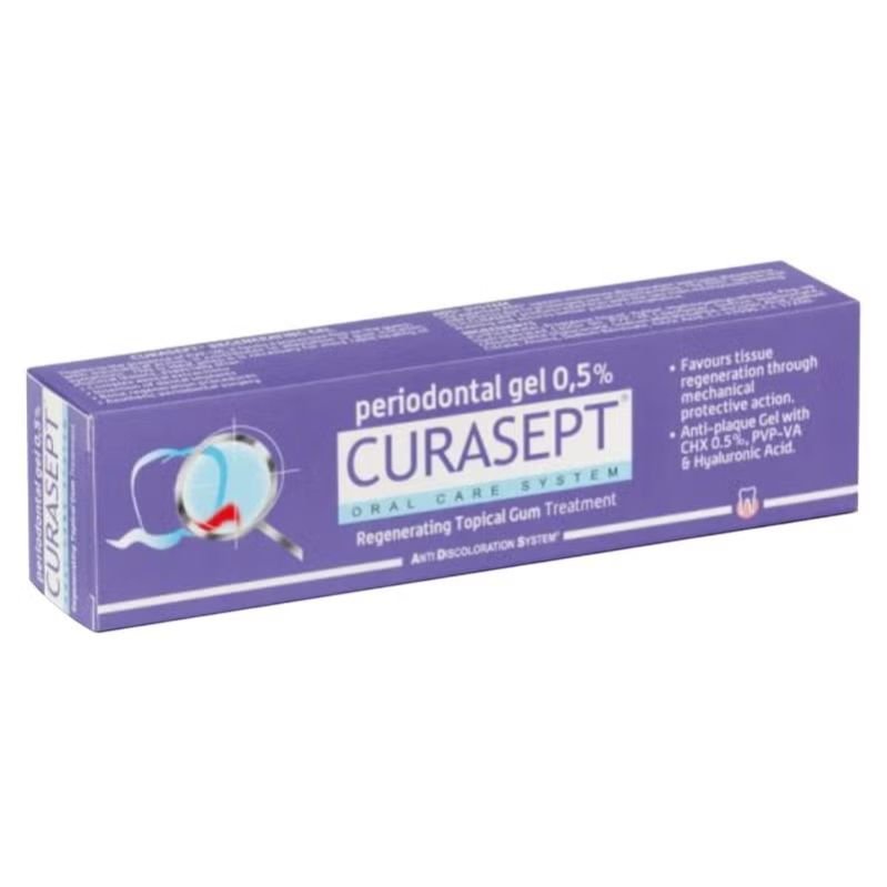 - Twice a day, apply a small amount of Curasept Oral Care System Regenerating Topical Gum Treatment. Apply 0.5% Periodontal Gel to the gums with your finger or a soft brush and gently massage or apply a thin film to the inner surface of the denture. Use suitable brushes for application in the interdental space. Use for 7 days.