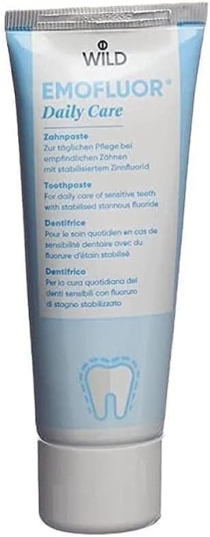 Emoflour Daily Care Toothpaste is enriched with stabilised stannous fluoride which protects your teeth while thoroughly cleaning them. It is an intensive treatment for sensitive tooth necks and irritated gums. This helps to prevent tooth decay.