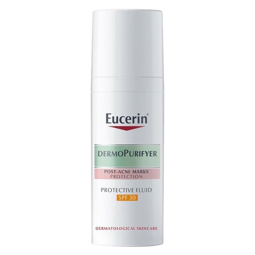 - Thoroughly cleanse skin before use. Apply one full pump of Eucerin Dermo Purifyer Post Blemish Anti-Mark SPF 30 Protective Fluid thoroughly all over your face and avoid the eye area. Use in the morning or as often as needed. Use in combination with Eucerin DermoPure Triple Effect Serum for enhanced efficacy.