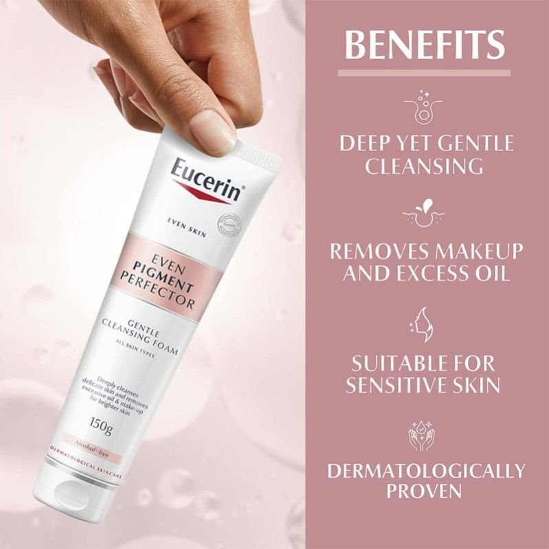 Eucerin Even Pigment Perfector Facial Cleansing Foam effectively cleanses and brightens your face with an optimal daily Whitening Treatment System. Exposure to sunlight, hormonal influences & ageing can result in dark patches & age spots, making skin look uneven. With the innovative Targeted Pigment Corrector technology to reduce dark spots, Eucerin Even Pigment Perfector Facial Cleansing Foam revives the skin cells, adds moisture to the skin, and leaves skin clean, clear, and healthy-looking. Merge diactive and Bisabolol deep cleanse and eliminate cosmetics and excess oil in the T-zone and also reduce accumulated dark skin cells. Eucerin Even Pigment Perfector products provide sensitive skin with an optimal daily Whitening Treatment System. This alcohol-free face wash deeply and effectively cleanses your face and brightens it with an optimal daily Whitening Treatment System. Eucerin Even Pigment Perfector Facial Cleansing Foam is clinically and dermatologically proven to be effective for all skin types. Beauty doesn t have to be complicated. It just needs to work. After all, your skin is the body s largest organ, and it deserves good care, too. That s why Eucerin is trusted by dermatologists, recommended by pharmacists, and loved by consumers worldwide as the brand that delivers healthy, beautiful skin for everyone. Discover the life-changing power of Eucerin s dermatological skincare products, from moisturisers and sunscreens to foot care products and more.