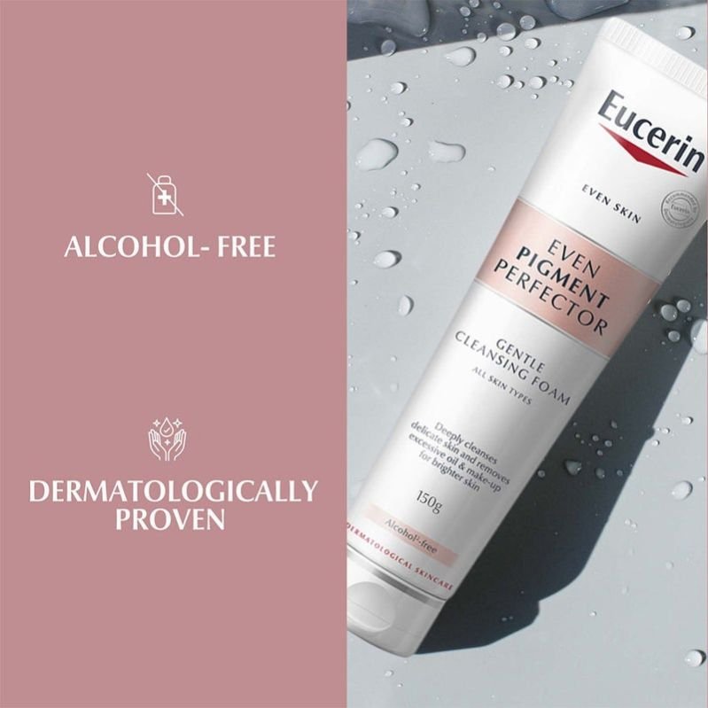 - Apply Eucerin Even Pigment Perfector Facial Cleansing Foam on damp skin, lather, and rinse thoroughly.