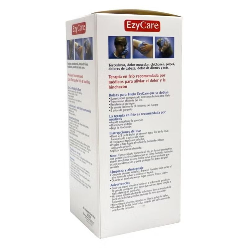 The Ezycare Ice Bag is a pleated ice bag that expands to hold 3 quarts of water with ice and is used as therapy for sprains, muscle strains, bumps, bruises, headaches and toothaches.