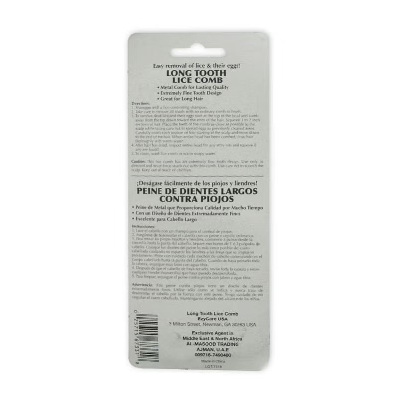 Ezy Care Long Tooth Lice Comb is a metal comb for lasting quality. It has extremely fine tooth design which is great for long hair.