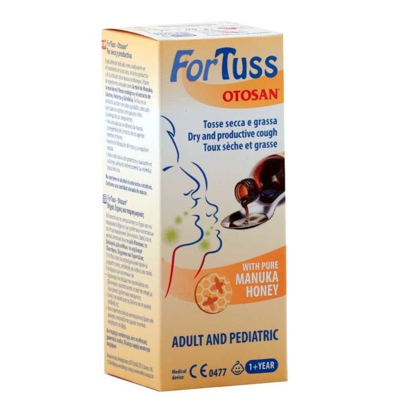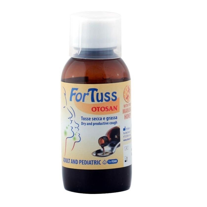 ForTuss Otosan Cough Syrup has been developed as an adjuvant for treating dry and productive coughs whilst also providing hydration of mucus and its natural discharge thanks to its functional ingredients: Manuka Honey, Organic Wildflower Honey and plant molecular complexes. ForTuss provides protection, counteracts irritation and hydrates the oropharyngeal mucosa, especially in the case of irritating factors caused by external agents (pathogenic agents, cold weather, pollution, and dust). ForTuss is rich in active substances and works as a mechanical action on the irritated mucosa. Thanks to the synergy of its components, it creates a protective layer that adheres to the mucosa, ensuring hydration and counteracting irritation, creating fast relief. Its delicate formula gives a pleasant taste, suitable for adults and children. ForTuss is suitable for people with celiac disease. ForTuss contains the precious Manuka Honey, known for its many beneficial properties, including a specific soothing action on the upper respiratory tract. This is combined with the soothing, emollient and balsamic action of the Helichrysum, Grindelia and Plantain Extracts, herbal substances rich in resins, polysaccharides and flavonoids that promote throat well-being. The Organic Wildflower Honey contributes to the emollient action of the product, also providing a pleasant taste. Lemon, Orange and Myrtle Essential Oil have calming and protective properties, and they give the product a balsamic note.