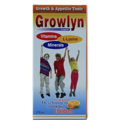 Growlyn Liquid, rich in B vitamins, iron, magnesium, and zinc, enhances immunity, physical growth, nervous system function, intellectual performance, attention span, and mental alertness.