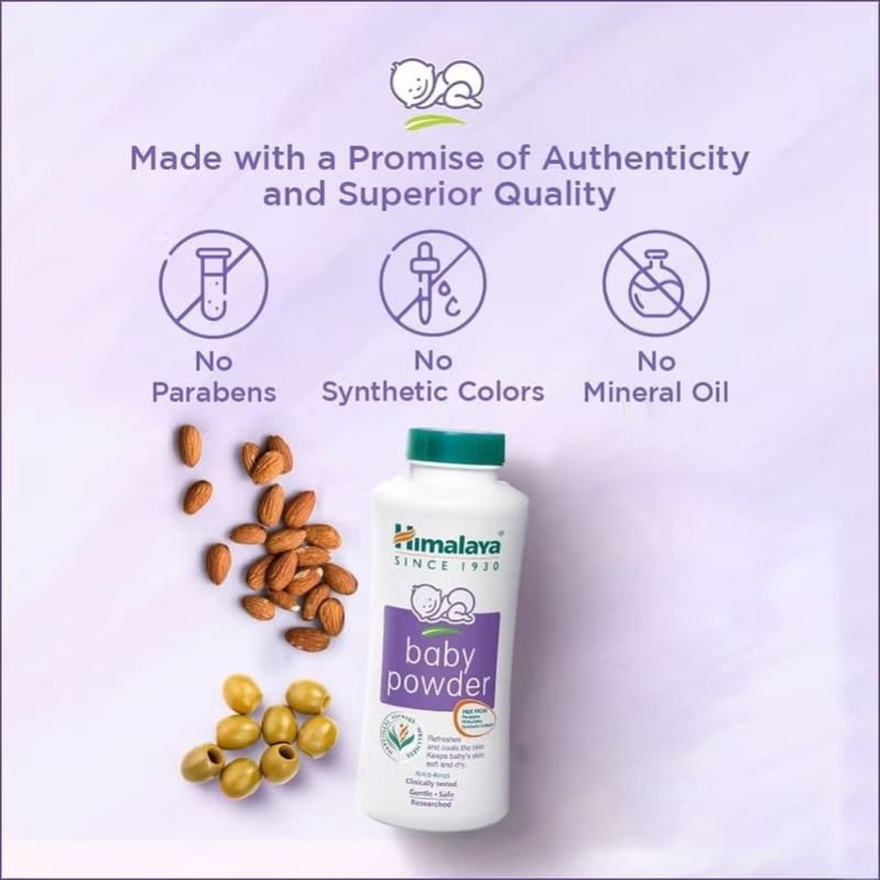 Himalaya Gentle Baby Powder With Olive & Almond is fortified with the power of Almond and Olive that keeps the baby s sensitive skin nourished and prevents rashes. Almond oil is rich in vitamins, minerals, and fatty acids that are beneficial for the skin. When used in baby powder, almond oil is known for its moisturizing properties. It helps to keep the baby s skin soft and hydrated, preventing dryness and discomfort. The oil forms a gentle barrier on the skin s surface, helping to lock in moisture. This can be especially useful for preventing irritation and maintaining the natural softness of a baby s delicate skin. Olive oil is a staple in many skincare and beauty products due to its various benefits. When incorporated into baby powder, olive oil provides nourishment to the skin. It contains antioxidants and healthy fats that can help protect the skin from damage and maintain its natural suppleness. Olive oil is also believed to have anti-inflammatory properties, which can be helpful for preventing chafing or irritation on a baby s sensitive skin. With the combination of these ingredients, the Himalaya Gentle Baby Powder cools the skin by managing excessive sweating. It is tested for mildness and is gentle on baby’s skin. Himalaya s wide range of baby products are tested for mildness that maintains the fragile balance of your baby s delicate and sensitive skin. Himalaya offers skincare products that soothe, nourish, and protect your baby s delicate skin. All Himalaya baby products are gentle, safe, and researched by dermatologists.