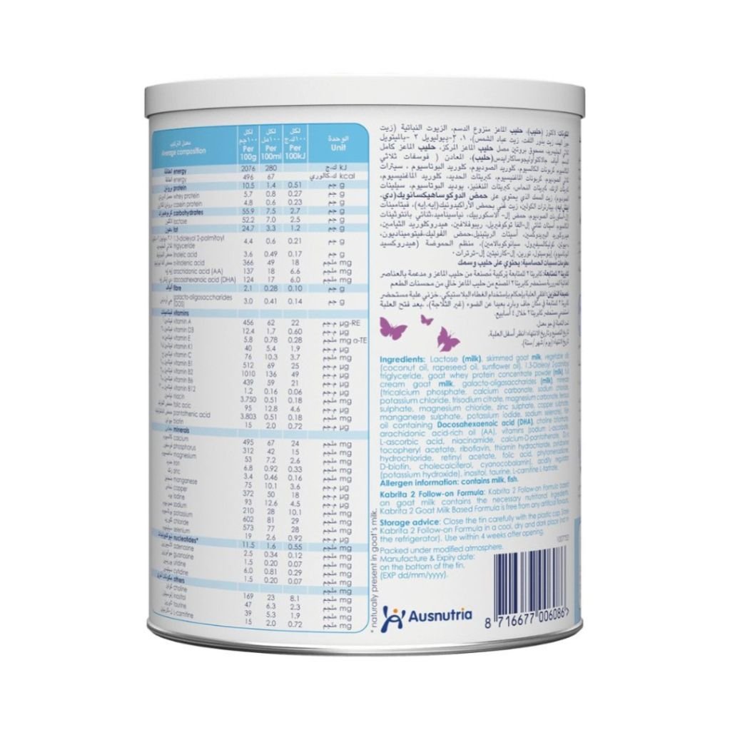 Kabrita 2 is a follow-on formula milk based on Dutch goat milk and can be used from 6 to 12 months of age. Kabrita 2 is enriched with all necessary nutrients for your baby. It contains GOS fibres and the unsaturated fatty acids DHA and AA.