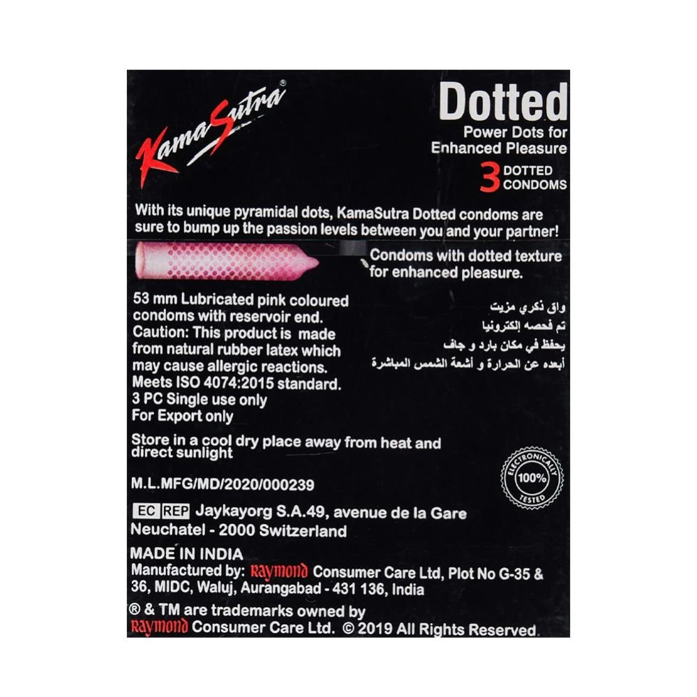 Kamasutra Dotted Flavour Condoms are a premium latex pack featuring raised dots, enhancing stimulation and intimacy, making each moment more exciting and satisfying.