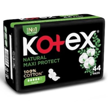 Kotex Natural Maxi Protect Thick 100% Cotton Pad With Wings Super Size 44s