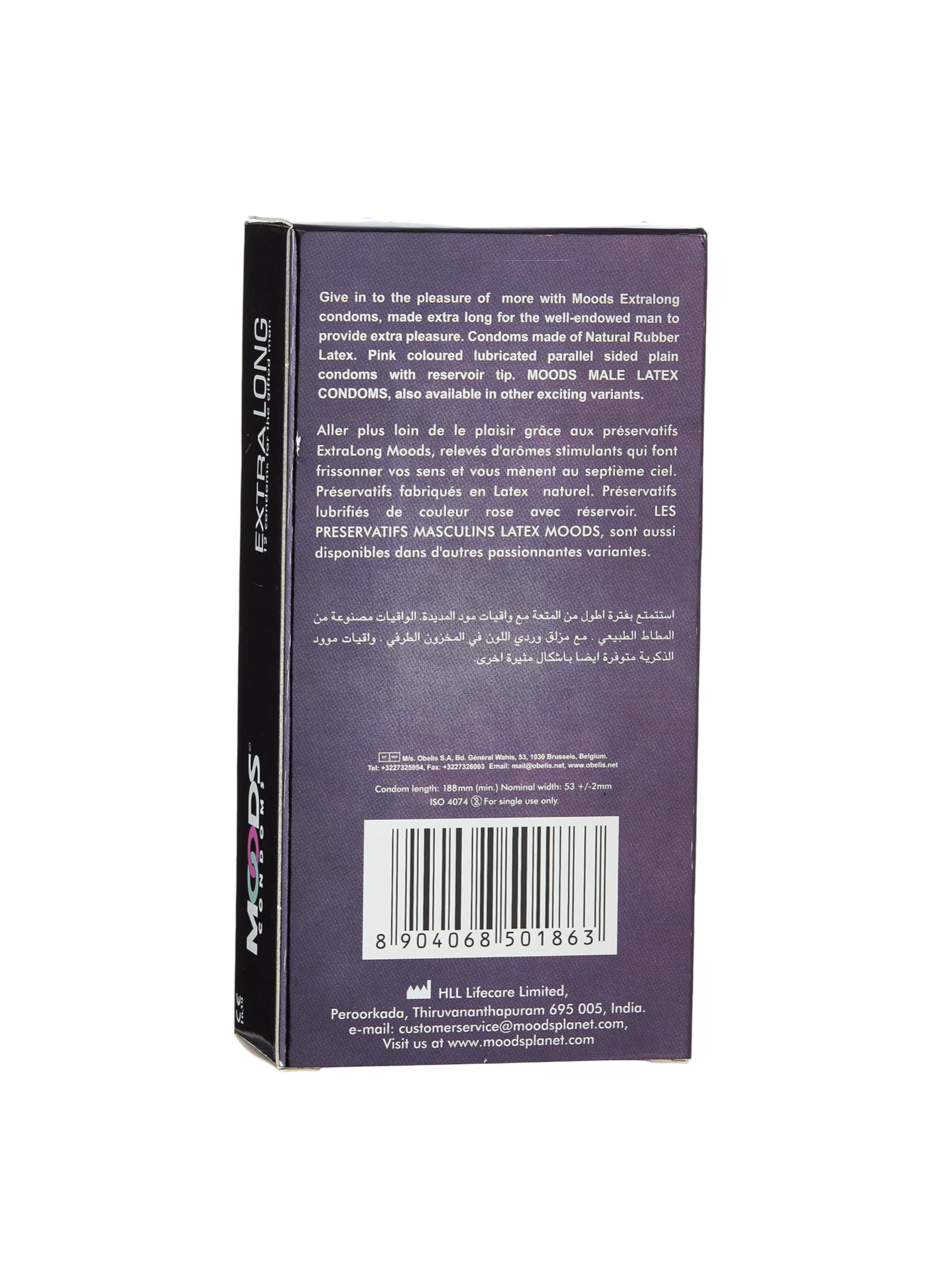Give in to the pleasure of more with Moods Extra Long condoms, made extra long for the well-endowed man to provide extra pleasure. Condoms made of natural rubber latex.