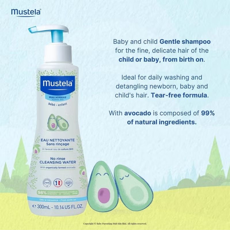 Mustela No-Rinse Cleansing Water gently cleanses baby s face, body, and diaper area, softening skin without stripping natural oils, using micellar water to dissolve dirt and impurities.