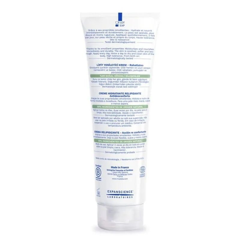 Mustela Stelatopia + Lipid Replenishing Baby Cream is a moisturizer designed to provide nourishment and relief for dry skin. It is suitable for the whole family, including newborns and toddlers. The formula is vegan and made of 99% natural ingredients, making it gentle on the skin. The moisturizing baby formula combines active ingredients to hydrate and soothe dry and atopic-prone skin. The nourishing cream contains a triple lipid complex with shea butter, avocado oil & sunflower oil. Shea butter is a rich emollient that helps to moisturize and soften the skin. Avocado oil contains fatty acids that provide nourishment to the skin. Sunflower oil is another source of essential fatty acids that helps in hydrating and replenishing the skin s barrier. But most importantly, the formula features organic sunflower oil distillate & prebiotic bioécolia. This complex has soothing properties and helps to relieve itching and redness in the skin. It helps protect the skin microbiome, strengthen the skin s natural barrier, and support the skin s natural defenses. The moisturizer is particularly effective in preventing severe dryness and reducing the recurrence of irritation. By nourishing and repairing the skin s natural barrier, it helps to reduce redness and prevent further irritation. The cream s light texture allows for quick absorption, making it easy to apply and non-greasy. The eco-friendly design of the bottle, being 100% recycled and recyclable, also contributes to the product s environmentally friendly approach. In conclusion, the Mustela Stelatopia+ Lipid-Replenishing Baby Cream is a well-formulated moisturizer that provides relief for dry and atopic-prone skin, particularly in babies and young children. With its natural and vegan ingredients, it helps to strengthen the skin s barrier, soothe redness, and protect the skin microbiome, promoting overall skin health.