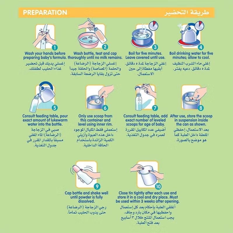 | Please follow the preparation and feeding instructions provided on the package. | Avoid prolonged storage at excessive temperatures. | Must be used within 4 weeks of opening